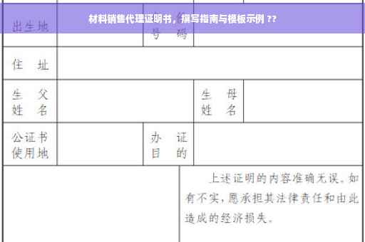 附录部分可包括相关法规、政策文件、申请材料、申请表格等,供读者查阅和参考,也可以附上一些成功案例或客户评价,以更直观地展示材料销售代理证明书的作用和价值,本篇文章旨在帮助读者全面了解材料销售代理证明书的相关信息,为企业在材料销售代理行业的发展提供指导和支持,通过本文的介绍和分析,相信读者对材料销售代理证明书的重要性、申请流程、职责与价值等方面有了更深入的了解,希望企业在今后的发展中能够充分利用这一证书,提升自己在市场中的竞争力,为行业的繁荣和发展做出贡献。