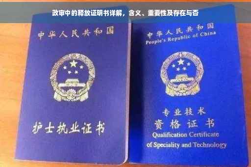摘要:,,政审中的释放证明书是对个人法律背景的重要证明文件,其含义为被审查者在法律程序中已被解除相关限制或处罚。这份证明书在政审中具有重要意义,能够证明个人无犯罪记录或已解除相关刑事限制,对于顺利通过政审至关重要。关于是否存在政审释放证明书,需根据具体情况而定。