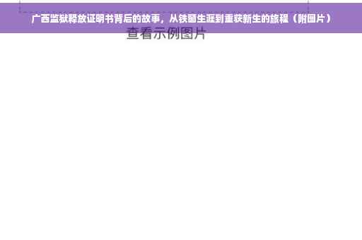 经过严格的考核和评估,李明获得了广西监狱释放证明书,这张证明书不仅是一张纸质的证明,更是他付出努力、赢得新生的象征,获得释放后,李明回到了家乡,开始了全新的生活。