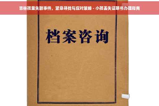 摘要:吉林省发生孩童丢失事件,引发紧急寻找行动。面对失联孩童,应立即报警并启动应急预案,包括广泛传播失联信息、组织搜索队伍、加强监控等。关于小孩丢失证明书办理问题,家长应前往当地公安机关报案,并咨询相关流程,准备必要材料如身份证明、丢失情况等,以尽快办理证明。