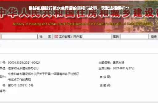 摘要:本文将揭示低保银行流水单背后的故事与真相,探讨如何获取这些流水单。通过深入了解,我们将揭示低保银行流水单的来源和真实性,帮助公众理解其背后的真相。文章旨在揭示真相,消除公众疑虑。