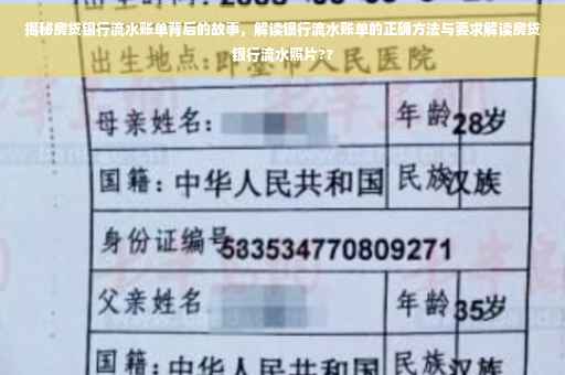 摘要:本文将揭示房贷银行流水照片背后的故事,教你如何正确解读银行流水账单,确保顺利申请房贷。文章介绍了银行流水账单的重要性,并详细说明了银行流水照片的要求。通过阅读本文,你将了解如何准备和提交符合要求的银行流水账单,避免在申请房贷过程中出现问题。