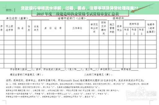 摘要:,,本文介绍了贷款银行审核流水的详细过程、要点及注意事项。概述了银行审核流水的目的和重要性。详细解释了流水审核的过程,包括客户提交资料、银行初步审核、查询征信等步骤。强调了审核过程中的要点,如收入稳定性、账户活跃度等。探讨了流水审核中可能出现的异常情况,如流水不足、虚假流水等,并提醒客户注意事项,以确保贷款申请顺利。