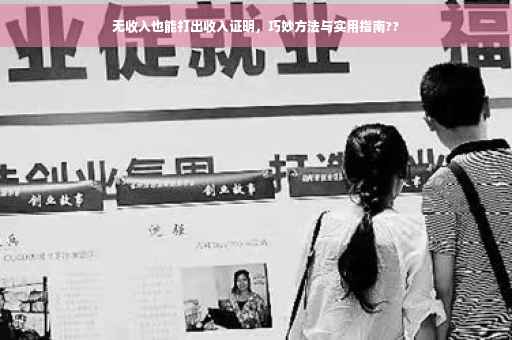 没有收入时打出收入证明确实是一个挑战,但并非不可能,通过灵活展示个人资产、提供其他形式的收入来源证明、寻求第三方机构的帮助以及提供个人担保和承诺等方法,您仍然可以证明自己的经济实力,提高未来收入也是解决问题的关键,通过提升技能和教育、拓展人际关系和网络、多元化收入来源以及理财规划和管理等方法,您可以为自己的未来打下坚实的基础,希望本文的建议和方法能对您有所帮助。