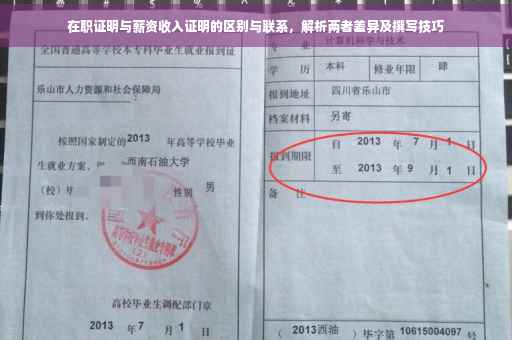 摘要:在职证明和薪资收入证明都是证明个人在职状态和收入情况的证明文件,但它们有所区别。在职证明主要证明个人在某一单位或公司的职务和工作状态,而薪资收入证明则详细证明个人的薪资收入和福利待遇。两者联系在于都是反映个人在职情况的证明。在撰写时,应明确区分两者内容,准确填写相关信息。