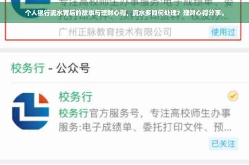 摘要:,,个人银行流水较多背后的故事与理财心得分享。面对大量银行流水,首先要理性分析,明确资金流动原因。合理规划个人财务,区分生活支出与理财投资。建议制定详细的预算计划,注重节流与开源并重。通过理财投资实现资产增值,但需谨慎选择投资渠道,分散风险。重视长期稳健的理财策略,保持理性投资心态。最终目的是实现财务自由,提升生活质量。