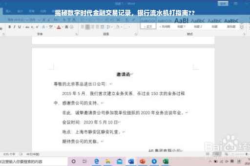 随着互联网技术的飞速发展,银行业已全面进入数字化时代,机打银行流水作为个人和企业金融交易的重要记录,日益受到人们的关注,本文将带您一探机打银行流水的奥秘,了解其在现代金融领域的应用及重要性。