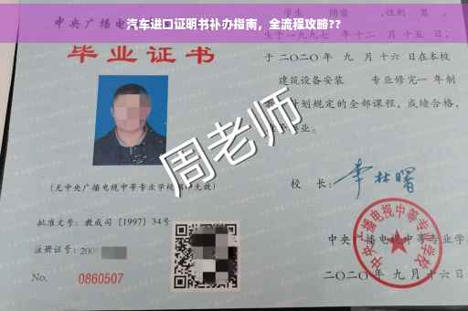摘要:关于汽车进口证明书补办的全攻略,详细阐述了补办流程。若丢失或损坏汽车进口证明书,需及时补办,具体流程包括前往原发证机关办理挂失手续,提交相关证明材料,如个人身份证明、车辆所有权证明等。整个流程需遵循一定时间和程序,以确保顺利补办汽车进口证明书。