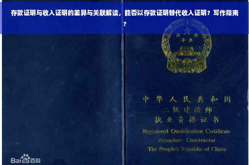 存款证明与收入证明之间的差异及关联解读。存款证明显示个人在某一时点的银行存款状况,而收入证明则反映个人的收入来源和收入水平。两者不可相互替代,因为存款证明并不能反映持续稳定的收入来源。如需在写作中提及存款证明能否作为收入证明,应明确指出其不能替代收入证明,但可以辅助证明个人资产状况。