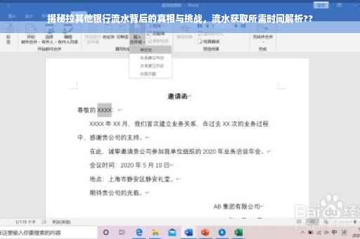 摘要:本文将揭示拉其他银行流水背后的真相与挑战,包括所需时间和可能遇到的困难。通过深入了解银行流水的重要性及其背后的复杂性,我们将探讨如何有效应对这些挑战,确保顺利获取所需银行流水信息。本文还将简要介绍拉其他银行流水所需的时间范围。