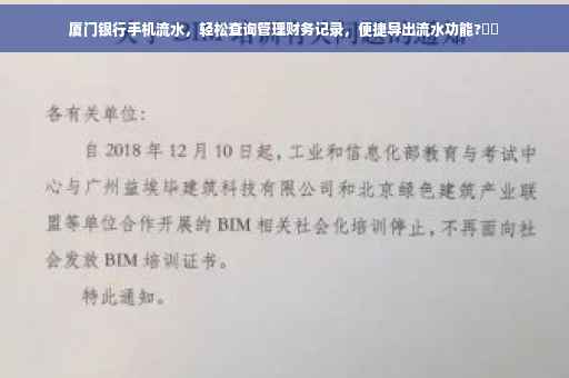 随着移动互联网的普及,手机银行成为处理日常银行业务的重要渠道,厦门银行作为一家具有深厚历史背景和广泛客户基础的银行,其手机银行业务备受瞩目,本文将详细介绍厦门银行手机流水的查询方法、功能特点以及注意事项,帮助用户更好地管理个人财务。