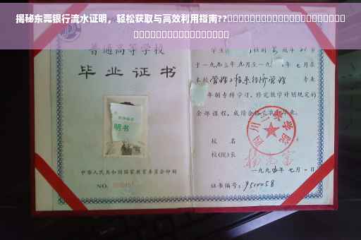 摘要:本文将介绍如何获取东莞银行的流水证明,并妥善利用其信息。通过简单的步骤,包括前往银行柜台或网上银行操作,即可轻松获取银行流水证明。本文还将提醒读者妥善保管流水证明,并在需要时提供合适的用途,如贷款申请、财务审计等。在获取和利用银行流水证明时,需注意保护个人隐私和信息安全。
