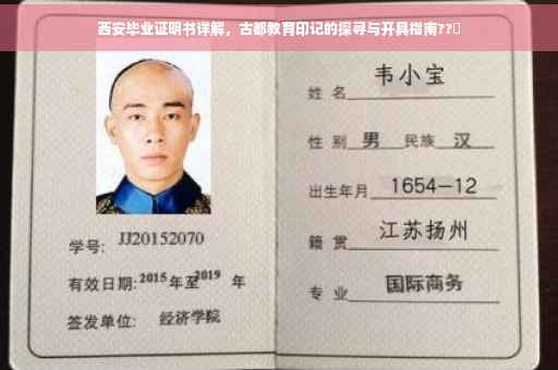 摘要:本文将介绍西安毕业证明书的有关信息,探寻古都背后的教育印记。想要获取西安毕业证明书,需要了解开具证明书的正确途径和所需材料。本文将为您提供有关开具西安毕业证明书的指导和帮助,以便您顺利获得这份重要的教育证明。
