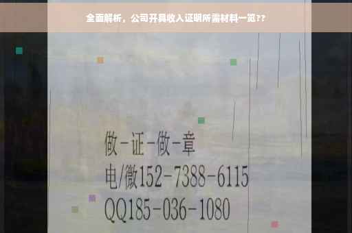 摘要:本文将全面解析公司开具收入证明所需的材料,包括个人身份证明、工作证明、薪资收入证明等必要文件。通过本文的指导,读者可以了解在申请贷款、信用卡或其他需要收入证明的情况下,应准备哪些证明材料,以便顺利获得公司的收入证明。