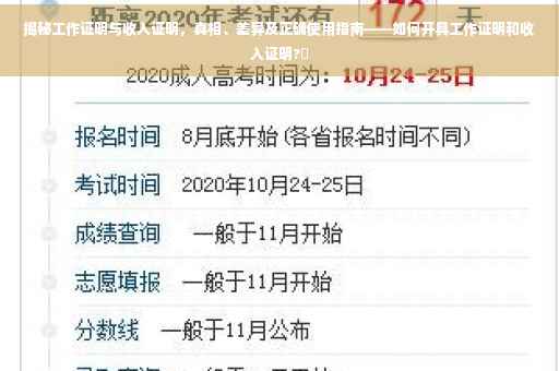 摘要:本文将为你揭示工作证明与收入证明之间的真相和差异,教你如何正确使用这两种证明文件。本文将介绍如何开具工作证明和收入证明,包括需要注意的细节和常见问题。通过阅读本文,你将了解如何正确填写和使用这些证明文件,为你的工作和财务规划提供有力的支持。