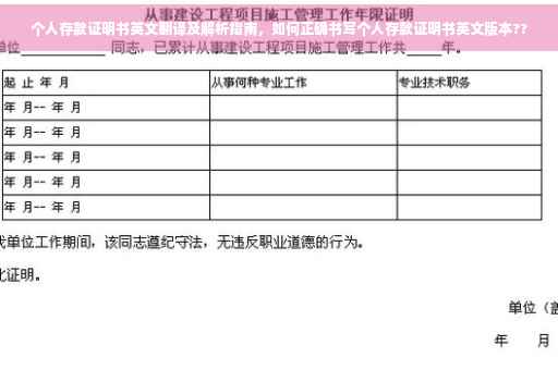 随着全球化的发展,越来越多的人开始关注个人财务管理和资产证明的重要性,个人存款证明书作为一种重要的财务证明文件,在申请留学、签证申请、贷款等方面扮演着至关重要的角色,本文将详细介绍个人存款证明书的英文翻译及其相关内容,帮助读者更好地理解和使用。