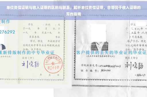 摘要:单位资信证明与收入证明是两种不同的证明文件,但它们之间存在一定的联系。单位资信证明主要用于证明单位的信用状况、经营状况、资质等,而收入证明则用于证明个人的收入状况。两者在证明内容上有一定的区别,但在某些情况下,资信证明中可能会包含单位的员工收入情况。在撰写时,应明确区分两者的不同点,并根据具体需求提供准确、清晰的信息。