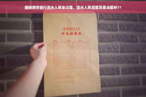 摘要:本文将为你揭示房贷银行流水入账的全过程,包括银行流水入账的时间、注意事项等。想要了解房贷银行流水入账的一切?本文将为你详细解答,让你在申请房贷时更加得心应手。从流水入账的时间到需要注意的细节,本文一一为你解析。