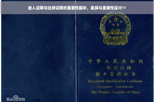 摘要:本文将解析收入证明与住房证明的重要性,探讨两者在生活中的不同作用。收入证明和住房证明都是证明个人经济状况的重要文件,但在申请贷款、租房等方面具有不同的作用。本文将介绍两者的区别和重要性,帮助读者了解如何正确使用这些证明文件。