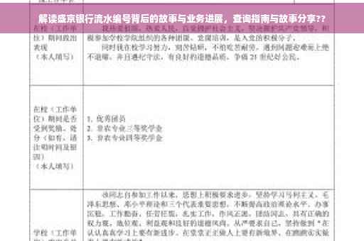 以流水编号为具体案例,当客户通过盛京银行进行一笔转账操作时,系统会生成一个唯一的流水编号,客户可以通过该编号查询交易状态,了解资金是否到账,这一过程中,流水编号的作用至关重要,它保障了交易的透明度和安全性,通过这个案例,我们可以看到盛京银行在业务发展和风险控制方面的努力与成果。
