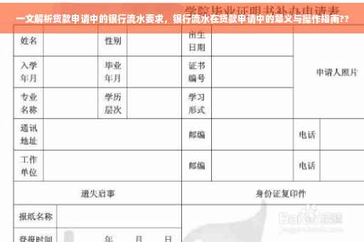 摘要:贷款申请通常需要提供银行流水,这是银行评估申请人还款能力的重要依据。银行流水指申请人在一定时间内通过银行账户的资金往来记录,包括收入和支出。文章详细解析了贷款申请中的银行流水要求,解释了银行流水在贷款申请中的意义和作用,帮助读者了解贷款申请流程。