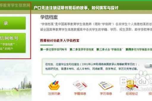 摘要:,,本文将探讨户口无法注销证明书的背后故事及编写方法。针对这一问题,文章将简要介绍户口无法注销的原因,包括可能的程序问题、遗留问题或政策限制等。还将指导如何撰写户口无法注销证明书,包括需要包含的关键信息和格式要求。通过本文,读者可以了解户口问题的复杂性和解决途径。