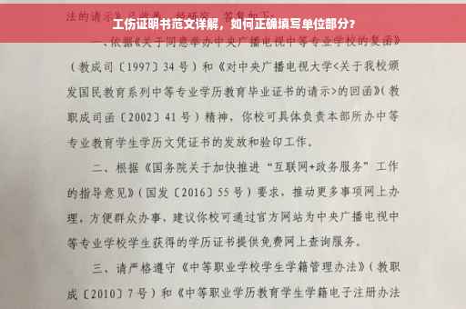摘要:本文介绍了如何撰写工伤证明书范文单位部分的内容。详细解释了单位部分的写作要点,包括填写单位名称、员工姓名、职务、工伤事故发生的具体时间、地点及经过等关键信息。文章旨在帮助读者了解工伤证明书的规范书写方式,确保工伤认定流程的顺利进行。