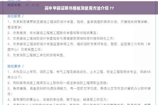 (2)就业:部分企业在招聘时可能要求学生提供高中学籍证明,以了解其教育背景。
