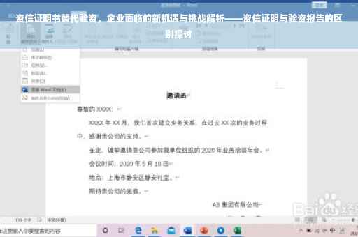 随着科技的飞速发展和金融行业的不断创新,资信证明书在企业运营中的地位日益重要,一些企业开始尝试以资信证明书代替传统的验资流程,以简化手续、提高效率,这一变革究竟为企业发展带来了哪些新机遇,又带来了哪些潜在风险和挑战?本文将从多个角度进行深入探讨。