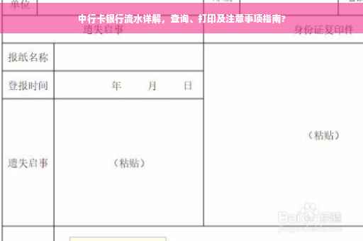 摘要:本文将详细介绍中行卡银行流水的查询、打印及注意事项。通过本文,您将了解如何查询银行流水,包括线上和线下查询方式。还将介绍如何打印银行流水以及需要注意的事项,以帮助您更好地管理财务和避免不必要的麻烦。