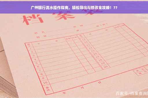 在现代金融生活中,银行流水作为资金往来的重要记录,已成为办理贷款、信用卡等金融业务的必备证明,居住在广州的朋友们,是否曾遇到需要修改银行流水的情况?无论是由于记录错误还是漏打等原因,对流水进行修改可能是必要的,为此,本文将为你详细解读广州银行流水修改的流程、重要注意事项以及常见问题的解答,助你轻松解决银行流水修改问题。