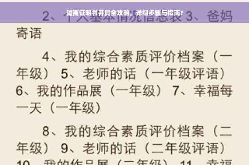 摘要:本篇全攻略详细介绍了隔离证明书的开具流程。从了解开具要求、准备相关材料,到具体开具步骤和注意事项,内容全面且实用。想要了解隔离证明书如何开具的读者,可以跟随此攻略轻松完成相关手续。通过本攻略,您将了解隔离证明书的正确开具方法,确保信息的准确性和完整性。