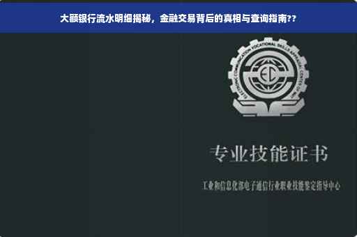 在当今社会,随着金融市场的日益繁荣,越来越多的人开始关注自己的财务状况,银行流水作为个人或企业经济活动的记录,其重要性日益凸显,大额银行流水明细更是备受关注,不仅关乎个人信用评估、贷款申请等方面,还涉及到税务审查、企业经营等多个领域,本文将详细解读大额银行流水明细,帮助大家更好地了解自己的金融交易状况。
