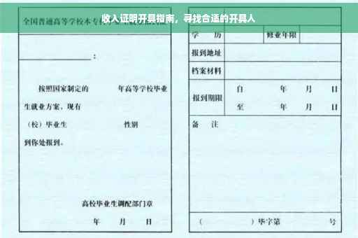 摘要:寻找合适的开具人提供收入证明,这是一个重要步骤。收入证明是证明个人经济状况和职业收入的重要文件,通常由雇主或人力资源部门开具。确保选择具有权威性和信誉度的开具人,以保障证明的真实性和有效性。在开具收入证明时,需准备相关证件和资料,以便顺利获取证明。寻找合适的开具人是成功获取收入证明的关键。