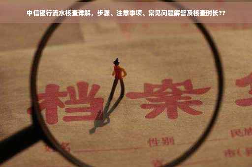 本文详细介绍了中信银行核查流水的步骤、注意事项以及解答了一些常见问题,希望能够帮助大家更好地了解并顺利完成流水核查,在办理过程中,请保持耐心,遵守银行规定,确保办理过程的顺利进行,如有更多疑问,请随时咨询中信银行工作人员。