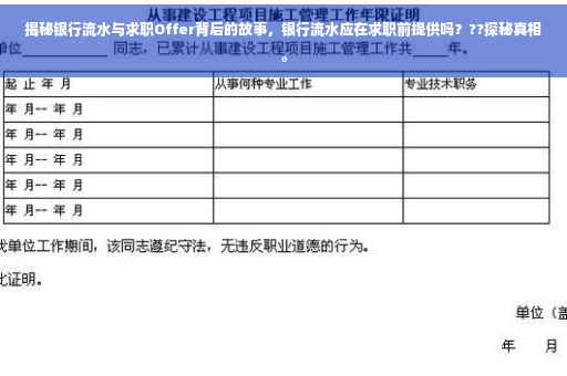 摘要:,,关于银行流水与求职Offer的故事,揭示了求职者需要注意的重要环节。银行流水是否需要在获得Offer前提供因公司而异。求职过程中,了解银行流水的合适时机和流程至关重要。本文旨在帮助求职者理解这一过程,确保个人信息安全并顺利获得心仪的职位。