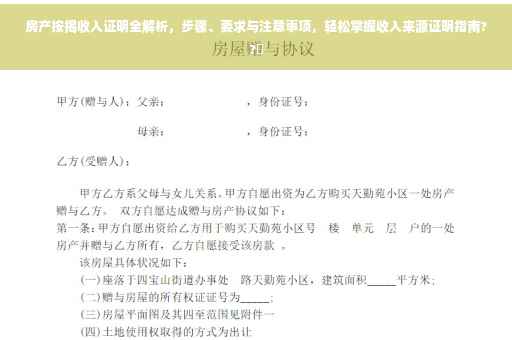 购房过程中,房产按揭贷款是广大购房者普遍选择的融资方式,为了顺利办理按揭贷款,收入证明是不可或缺的重要材料,本文将全面介绍房产按揭收入证明的相关内容,帮助购房者更好地了解和准备收入证明,实现购房梦想。