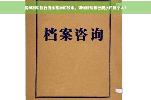 摘要:本文将揭示村中银行流水背后的故事,探讨如何证明银行流水账单归属个人。在村级环境中,查证银行流水账单的真实性对于解决各种经济纠纷和证明个人财务状况至关重要。本文将介绍一些方法,帮助村民有效证明银行流水账单属于自己,包括提供相关身份证明、银行账户信息以及可能的第三方证明等。通过这些方法,村民可以更好地保护自身权益,确保银行流水账单的合法性和准确性。