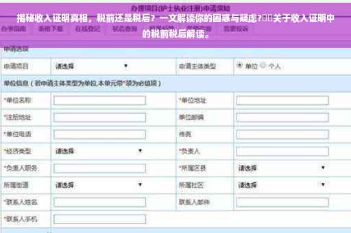 摘要:本文旨在解读收入证明的真相,解答读者关于税前和税后收入的疑惑。文章详细阐述了税前和税后收入的概念和区别,并指出在开具收入证明时,通常开具的是税前收入。通过本文,读者可以更好地理解自己的收入构成,避免在财务规划中产生误解。
