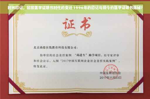 随着医疗技术的不断进步,医学证明书的内容与形式也在不断发展,数字化、电子化的医学证明书已成为当代医疗领域的发展趋势,随着人工智能、大数据等技术的广泛应用,未来的医学证明书将更加智能化、个性化,为患者提供更加便捷、高效的医疗服务,回望1996年的医学证明书,我们深感时代变迁与医疗领域的飞速发展,展望未来,我们满怀期待,医学证明书将在数字化、智能化等方面取得更大的突破,为人类的健康事业继续护航,医学证明书不仅是时代变迁的见证者,更是医疗领域发展的重要里程碑,让我们共同期待它在未来的发展中,为人类的健康事业作出更大的贡献。