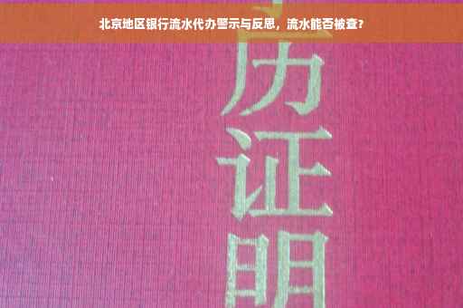 摘要:北京地区出现代办银行流水警示与反思,提醒公众注意代办银行流水的风险。代办银行流水需谨慎,北京地区可查询到的流水记录需通过正规途径办理。个人应提高警惕,避免不法分子利用代办银行流水进行欺诈行为,保护个人财产安全。相关部门应加强对代办机构的监管,规范市场秩序,维护金融安全。