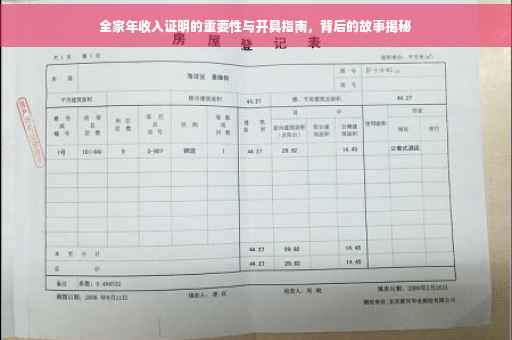 摘要:全家年收入证明对于个人和家庭来说至关重要,尤其在申请贷款、租房、求职等方面。开具此证明需要准备相关材料,如收入流水账单、税务凭证等,并遵循一定程序。背后隐藏着许多真实的故事,如家庭因收入证明而获得更好的生活机会。了解如何开具收入证明,对个人和家庭的发展具有重要意义。