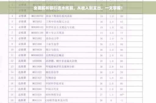 银行流水是记录个人或企业在银行进行的资金交易的重要文件,包括存款、取款、转账等交易明细,对于个人而言,银行流水是评估个人财务状况的关键依据,涉及到贷款申请、信用卡办理、投资理财等方面,对于企业来说,银行流水更是反映企业经营状况的重要参考,本文将为您详细介绍个人与银行流水的核算方法以及注意事项。