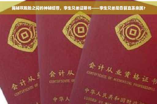 摘要:本文探讨了孪生兄弟之间的神秘纽带,介绍了孪生兄弟证明书的作用和意义。文章指出,孪生兄弟属于直系亲属范畴,他们之间存在一种特殊的心理和情感联系。本文旨在帮助读者了解孪生兄弟之间的关系,并揭示他们之间的独特纽带。