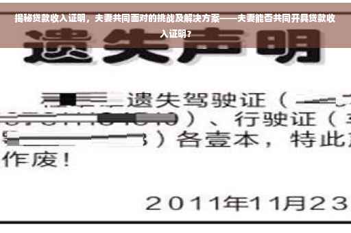 随着社会的快速发展,贷款已成为许多家庭实现各种需求的一种常见方式,在申请贷款时,夫妻双方往往需要提供贷款收入证明,以证明自己的还款能力和信用状况,本文将详细介绍夫妻双方贷款收入证明的重要性、常见问题及解决方案,帮助读者更好地应对挑战。