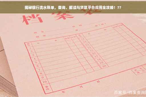 银行流水账单作为个人或企业金融交易的重要记录,对于贷款申请、信用卡办理、理财规划等方面具有关键作用,本文将详细解析银行流水账单的重要性,并引导你如何正确查询、解读和使用银行流水账单,以帮助你轻松掌握银行流水信息,做出明智的金融决策。