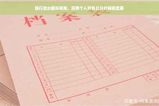 在当今社会,个人财务管理的重要性日益凸显,银行流水作为我们财务生活的真实写照,不仅记录着我们的收支情况,更反映了我们的消费习惯、收入结构以及整体财务状况,本文将引导大家如何深度解析银行流水,帮助大家更好地了解自己的财务情况。