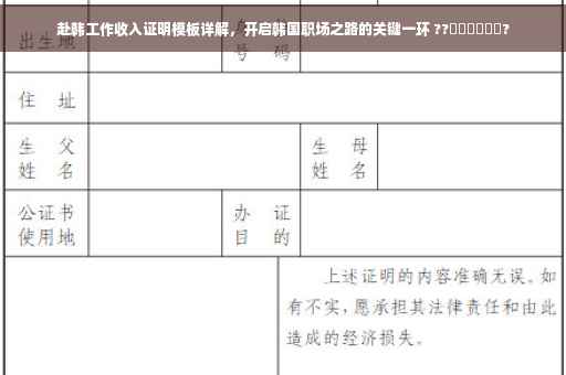 随着全球化的步伐加快,越来越多的人选择赴海外寻求更广阔的发展机会,韩国,作为亚洲的重要经济体之一,吸引了众多海外人才前来工作、学习和定居,在申请签证、租房、办理银行业务等关键环节中,收入证明成为展示个人经济实力和信用状况的重要文件,本文将为您提供一个赴韩工作的收入证明模板,并详细阐述其重要性及如何撰写有效的收入证明。