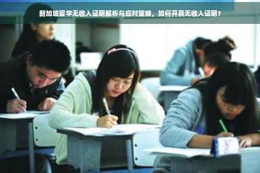 摘要:针对新加坡留学无收入证明的问题,本文探讨了探索与应对之道。介绍了如何开具无收入证明,包括向相关机构申请、提供其他证明材料等方法。也提醒留学生注意了解新加坡的入学要求和申请流程,确保顺利入学。本文旨在为面临类似问题的留学生提供指导和帮助。
