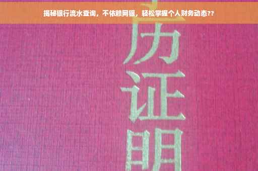 摘要:本文将介绍如何查询银行流水,帮助您轻松掌握个人财务动态。您将会了解到,无需使用网银也能查询银行流水的方法。通过阅读本文,您将能够便捷地管理个人财务,确保资金安全并做出明智的财务决策。